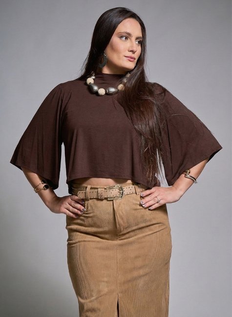 Confeccionada em malha de alta qualidade, oferece caimento confortável e leveza ao vestir. Com manga ampla e gola alta, ela une sofisticação e estilo, criando uma peça que se destaca em qualquer produção. O corte cropped valoriza a silhueta e permite combinações fashionistas e casuais.