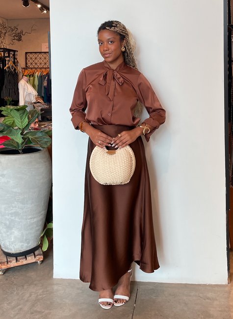 ✨ Look Evento Social: aposte em saia midi plissada e sandália de tiras.