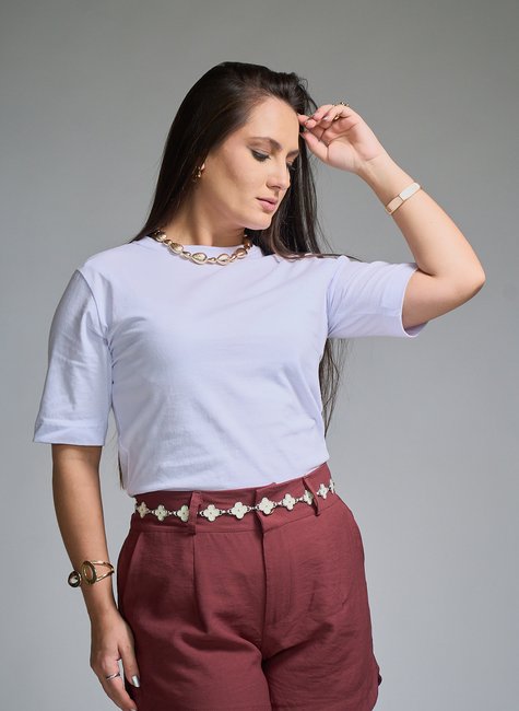 A Camiseta Jordana funciona como base para inúmeros looks. Ideal para usar sozinha ou em sobreposições, ela combina com jeans, alfaiataria, saias e conjuntos, adaptando-se a diferentes estilos e ocasiões.