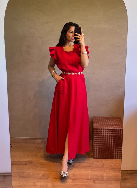 O babado nas mangas deixa o look mais romântico, enquanto a fenda garante leveza e movimento. Um conjunto prático, elegante e extremamente versátil para quem ama se vestir bem sem esforço!