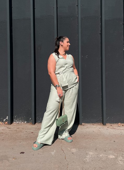 Modelagem pantalona que alonga a silhueta