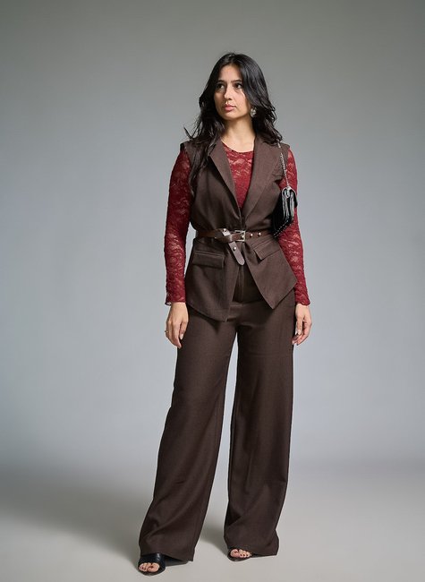 Perfeito para quem ama peças versáteis, o Conjunto Maria pode ser usado tanto em propostas mais elegantes quanto em produções fashionistas. Use junto para um visual poderoso ou separado para multiplicar combinações no guarda-roupa. O colete alongado alonga a silhueta, enquanto a pantalona garante fluidez e sofisticação.