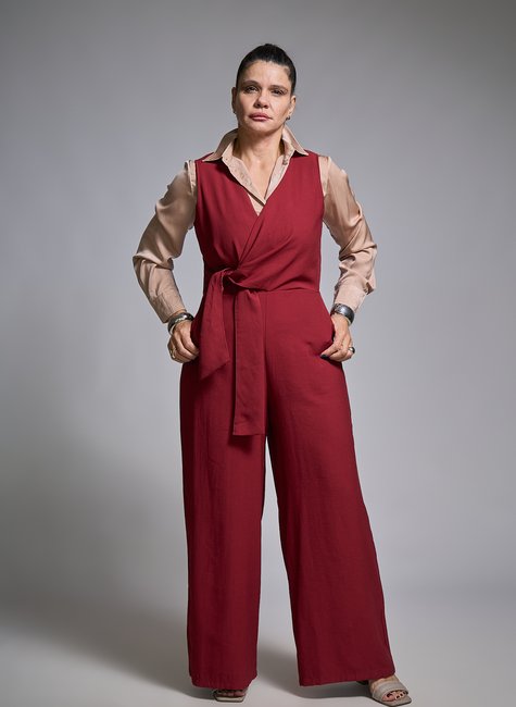 O Macacão Helena transita facilmente entre looks diurnos e noturnos. A modelagem pantalona alonga a silhueta, enquanto o decote transpassado adiciona um toque feminino e sofisticado. É ideal para quem gosta de peças práticas, mas com presença marcante.