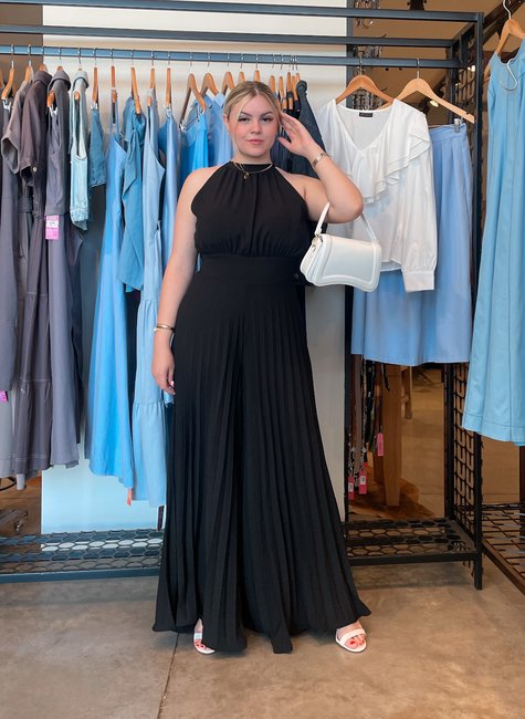 O Macacão Alicia é a escolha perfeita para quem ama um visual sofisticado e confortável ao mesmo tempo. Feito em crepe fluido, ele apresenta calça plissada que alonga a silhueta e traz movimento encantador a cada passo.