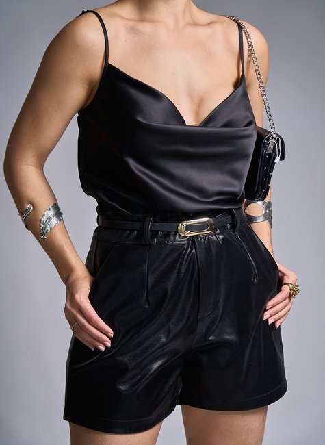 A gola boba adiciona movimento e charme à peça, criando um efeito sofisticado e moderno. Já as alças finas destacam o colo com delicadeza, tornando essa regata ideal tanto para produções mais elegantes quanto para looks casuais refinados.