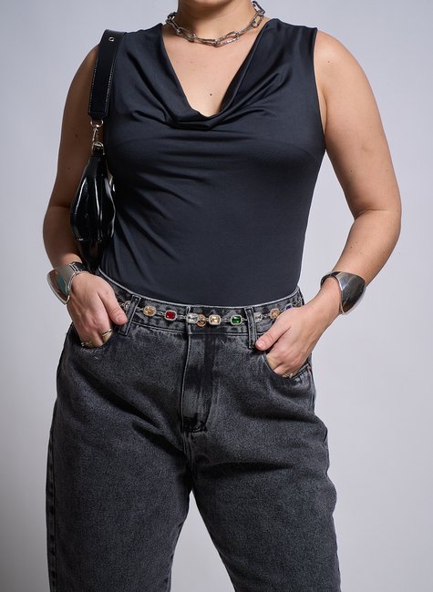 Com modelagem ombro a ombro, ela valoriza o colo de forma elegante e feminina, enquanto a gola boba adiciona movimento e charme ao look.