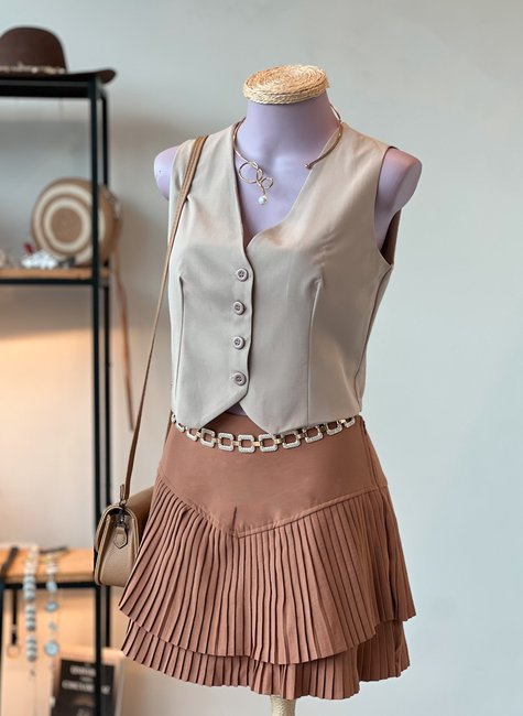 Saia curta plissada com movimento e leveza