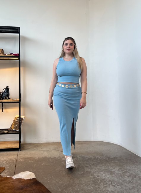 A Saia Longa Michele é a união perfeita entre estilo e praticidade. Confeccionada em tecido canelado de ótima elasticidade, ela se ajusta ao corpo de forma confortável, valorizando as curvas sem apertar. O destaque fica para a fenda lateral, que traz movimento, alonga a silhueta e adiciona um toque sensual na medida certa.