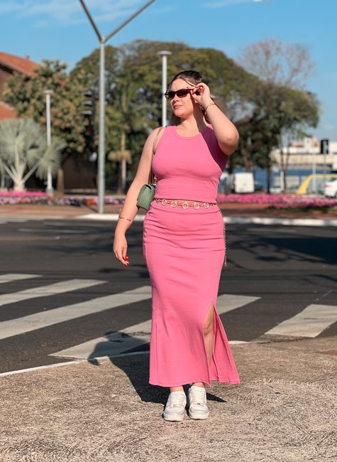 A Saia Longa Michele é a união perfeita entre estilo e praticidade. Confeccionada em tecido canelado de ótima elasticidade, ela se ajusta ao corpo de forma confortável, valorizando as curvas sem apertar. O destaque fica para a fenda lateral, que traz movimento, alonga a silhueta e adiciona um toque sensual na medida certa.