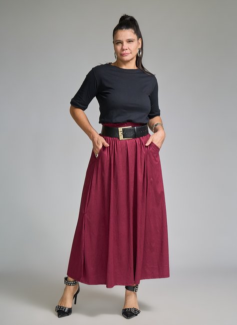 A Saia Larissa transita com facilidade entre produções casuais e looks mais elaborados. Seu design equilibrado permite combinações para o trabalho, compromissos do dia a dia ou até eventos mais descontraídos, sempre com conforto e estilo.