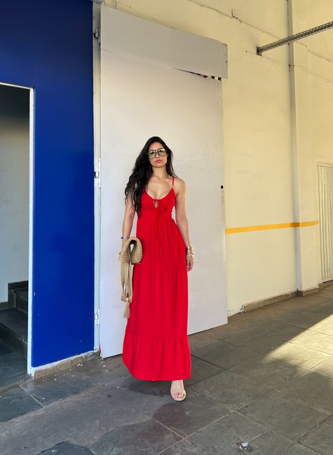 O Vestido Gabi é sinônimo de feminilidade e leveza. Confeccionado em crepe fluido, ele possui amarração no busto, que valoriza o colo e permite ajuste perfeito, além do lastex nas costas, garantindo conforto e caimento impecável.