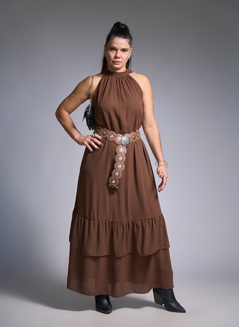 Com gola halter que valoriza os ombros e alonga a silhueta, essa peça traz um visual elegante e moderno, ideal para ocasiões especiais ou produções mais refinadas.