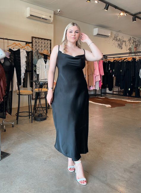 O Vestido Aline é a definição de elegância com um toque romântico. Confeccionado em cetim fluido, seu caimento midi valoriza a silhueta, enquanto as alças delicadas e a gola boba adicionam charme e feminilidade. Ideal para produções sofisticadas, ele combina conforto, leveza e estilo.